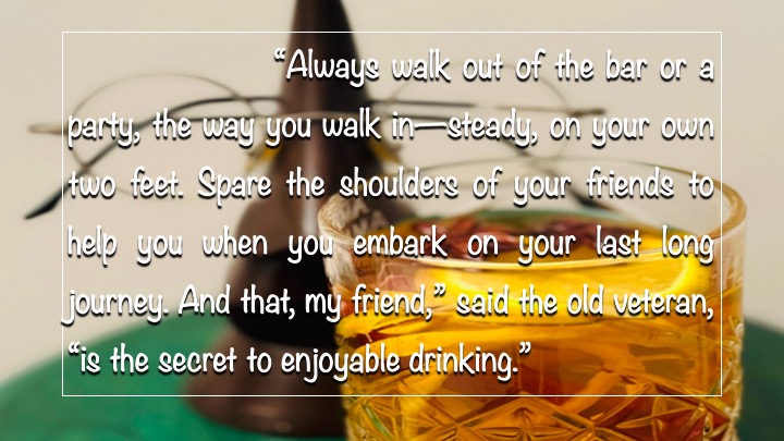 “Look at me… five feet, f*** all inches. Don’t expect my capacity to be great,” has been my standard plea to those, and there are many of them, who insist on my having more drinks than I choose to consume. I try to follow a veteran’s advice in this matter.